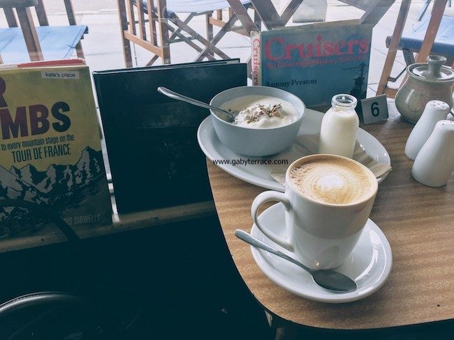 さっそく近くのカフェKate’s Placeで朝食を注文。カップかマグかと訊かれたので「マグで」と答えたら、カップの量の倍ぐらいあるフラットホワイト(オーストラリアのミルク珈琲)が来た。一緒に頼んだミューズリーも片手にずっしりと重い。ギリシャヨーグルトを混ぜてから、もう少しゆるくするためにミルクも足してみる。ギリシャヨーグルトは水分が少ないのだ。半分食べてもまだこんなに残っている。さすがにお腹がいっぱいになり、ずいぶん残してしまった。オーストラリアはなんでも量が多く、「小」と「大」をつくってくれないかなあといつも思う。