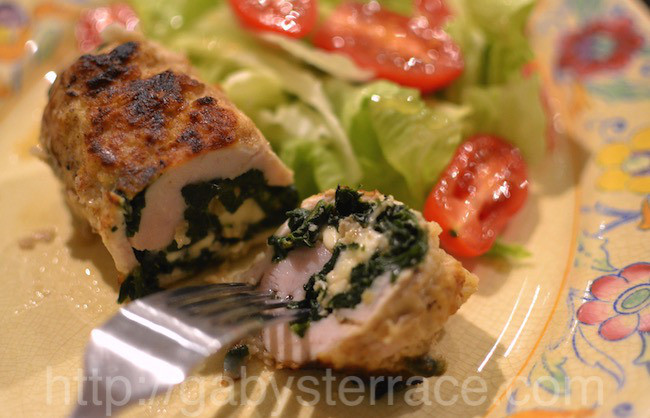 ほうれん草とフェタチーズというのは実に相性のよい材料で、パイにしてもよし、こうしてチキンロールの具にしてもよし、パスタやピザの具としても美味だ。それに一緒じゃなくてもよく使える便利な材料なので、冷凍庫にほうれん草、冷蔵庫にフェタチーズはがびんちの常備菜なのである。
