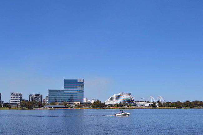 対岸に先程歩いてきたイーストパースの家並みが見える。