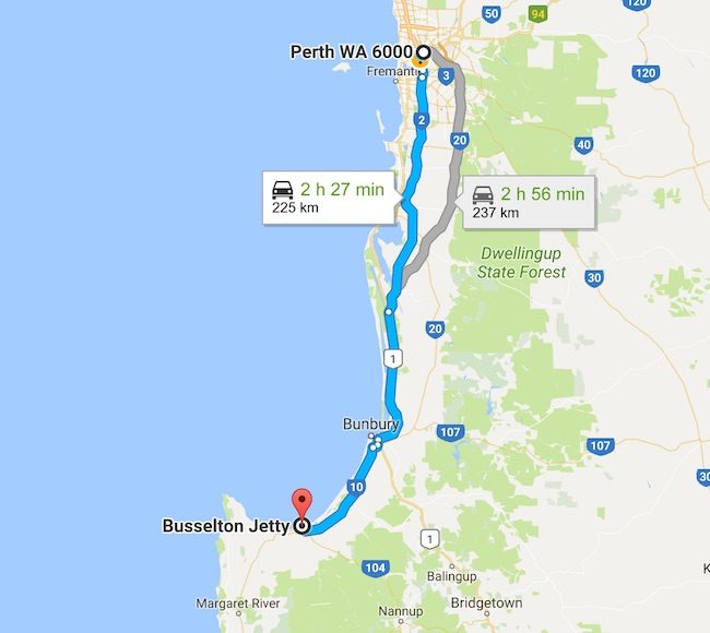 高速道路をパース近くだったら100キロでぶっ飛ばし、郊外になったら110キロにスピードを上げれば2時間半の道のり。日帰りで行けるぎりぎりの距離だと思う。