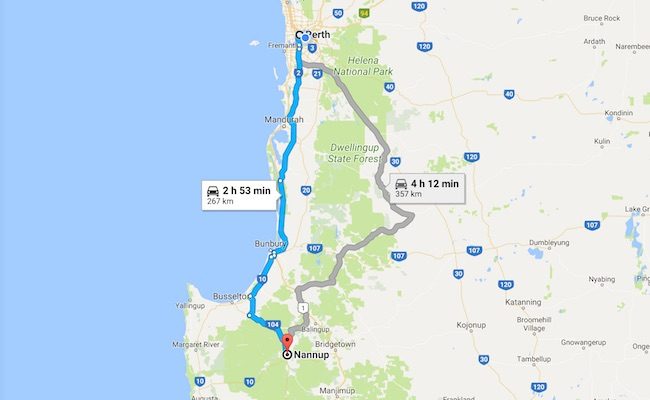 ナナップはパースからだと約227キロほど。バンバリーからは100キロ弱の距離だ。ここらへんからもうポツポツと雨まで降り始めた。パースは晴れていたのに、わざわざ天気の悪い地域に入ってしまったというわけだ。