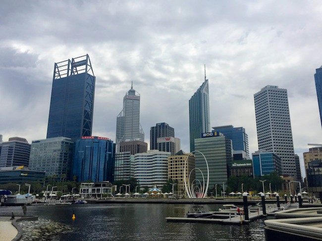 パースの高層建築の群れだ。パースは人口200万ほどの小さな州都なので、これでもわたしが住み始めたころより3つほどビルが増えている。